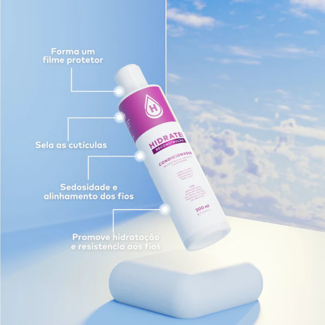 O Condicionador Hidratei Reconstrução forma um filme protetor e sela as cutículas, proporcionando cabelos mais sedosos, reparação profunda, controle de frizz para alinhamento, hidratação potente e crescimento saudável. Um diferencial da linha Reconstrução Hidratei e que ela foi desenvolvida com uma fórmula equilibrada para fornecer aminoácidos e outros ativos, de forma gradativa.