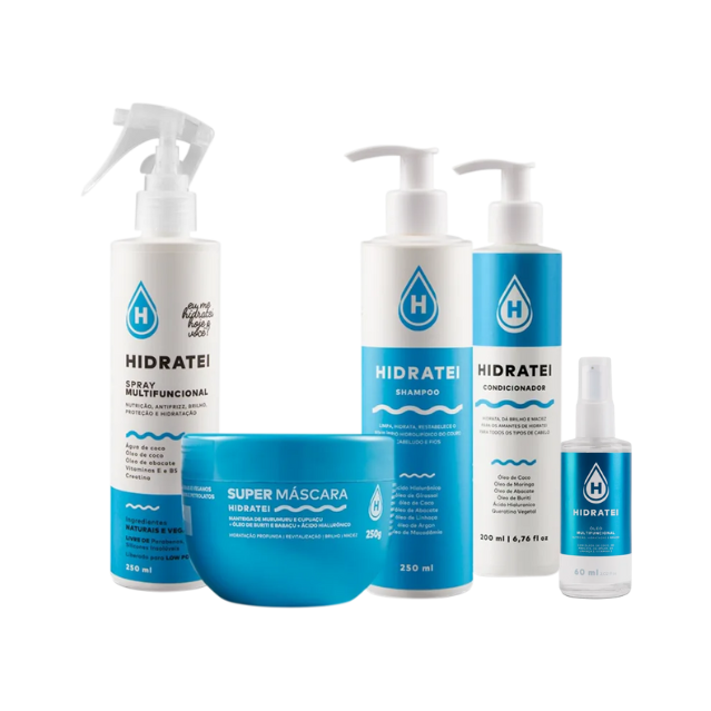 Hidratei Super Máscara – Máscara Capilar 250g: proporciona hidratação profunda e protege a queratina da fibra capilar. Além disso, também auxilia no fortalecimento dos cabelos, prevenindo frizz e pontas duplas.